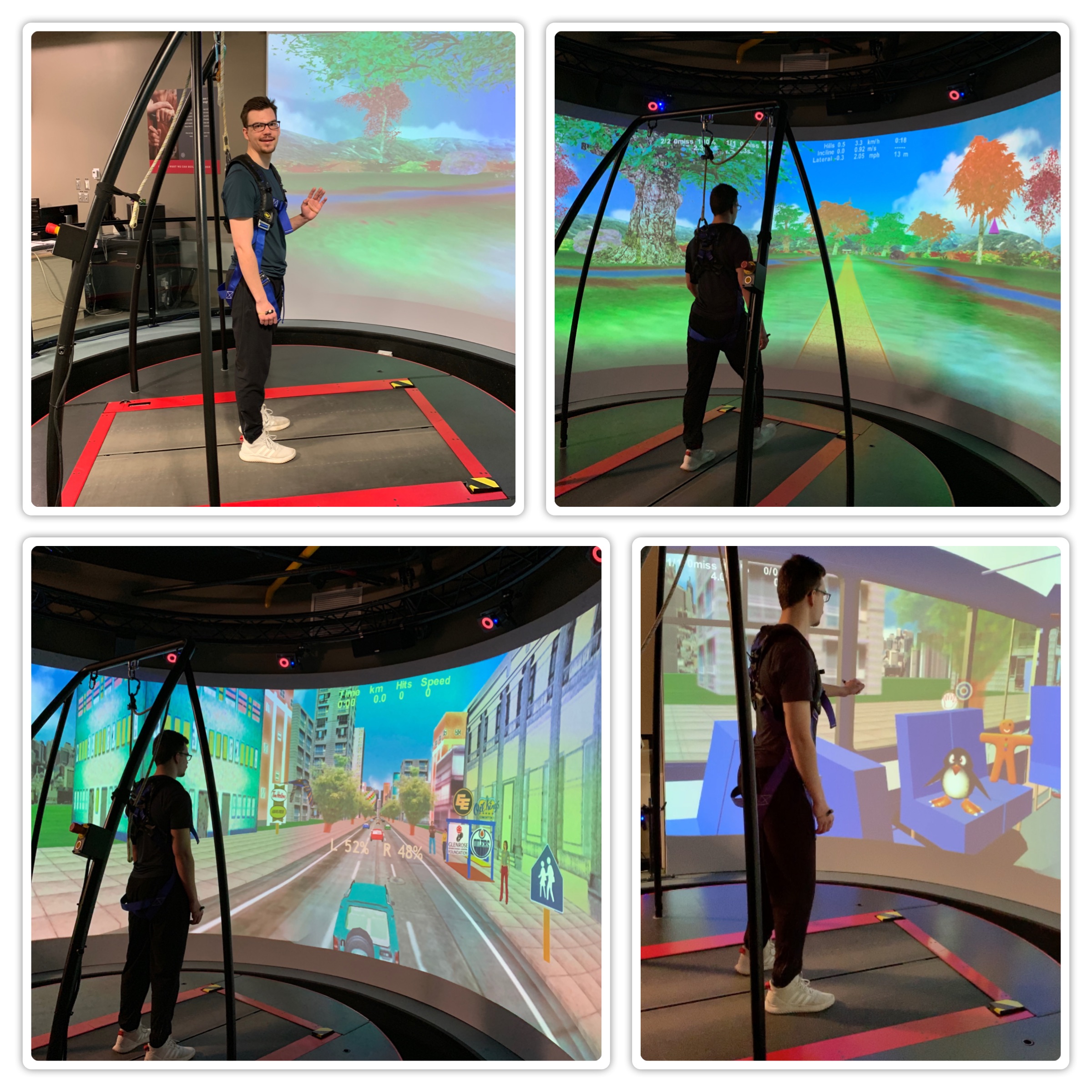 Physiotherapy started Stefan on the CAREN (Computer Assisted Rehabilitation ENvironment). It allows participants to interact with the simulated environment for immediate feedback on performance. There are some pictures below showing Stefan using the various programs to test balance, gait, scanning and the brain all at once – very cool! We are grateful to have access to this therapy.