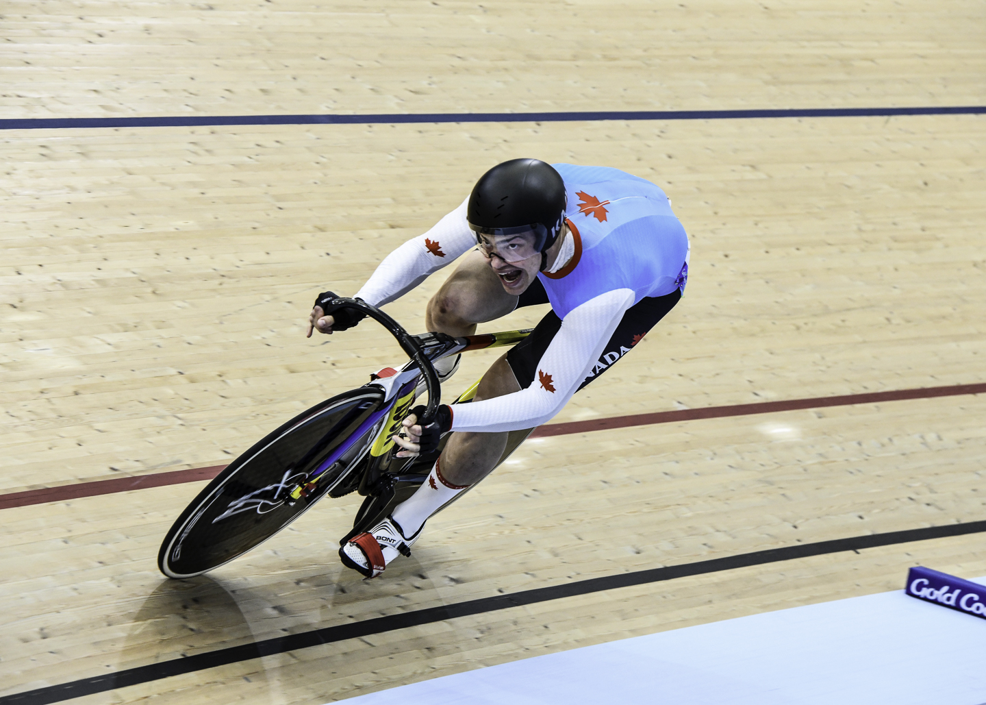It started with mountain biking in the Edmonton river valley with my Dad at age six. At age twelve (in photo above), I was introduced to the velodrome, road racing and mountain bike racing through Juventus Cycling Club’s LAMP program. (LAMP is named after Canada’s 2004 Olympic Gold Medalist track sprinter Lori-Ann Muenzer.)  Then there was cyclocross during the Cadet and Junior years: hopping barriers, riding in snow and those off camber turns! But my true calling was track sprinting. Above is a picture of me at the Gold Coast 2018 XXI Commonwealth Games during a Flying 200. My dream and intention was to compete as a Track Cyclist in the Tokyo 2020 Olympics and beyond!